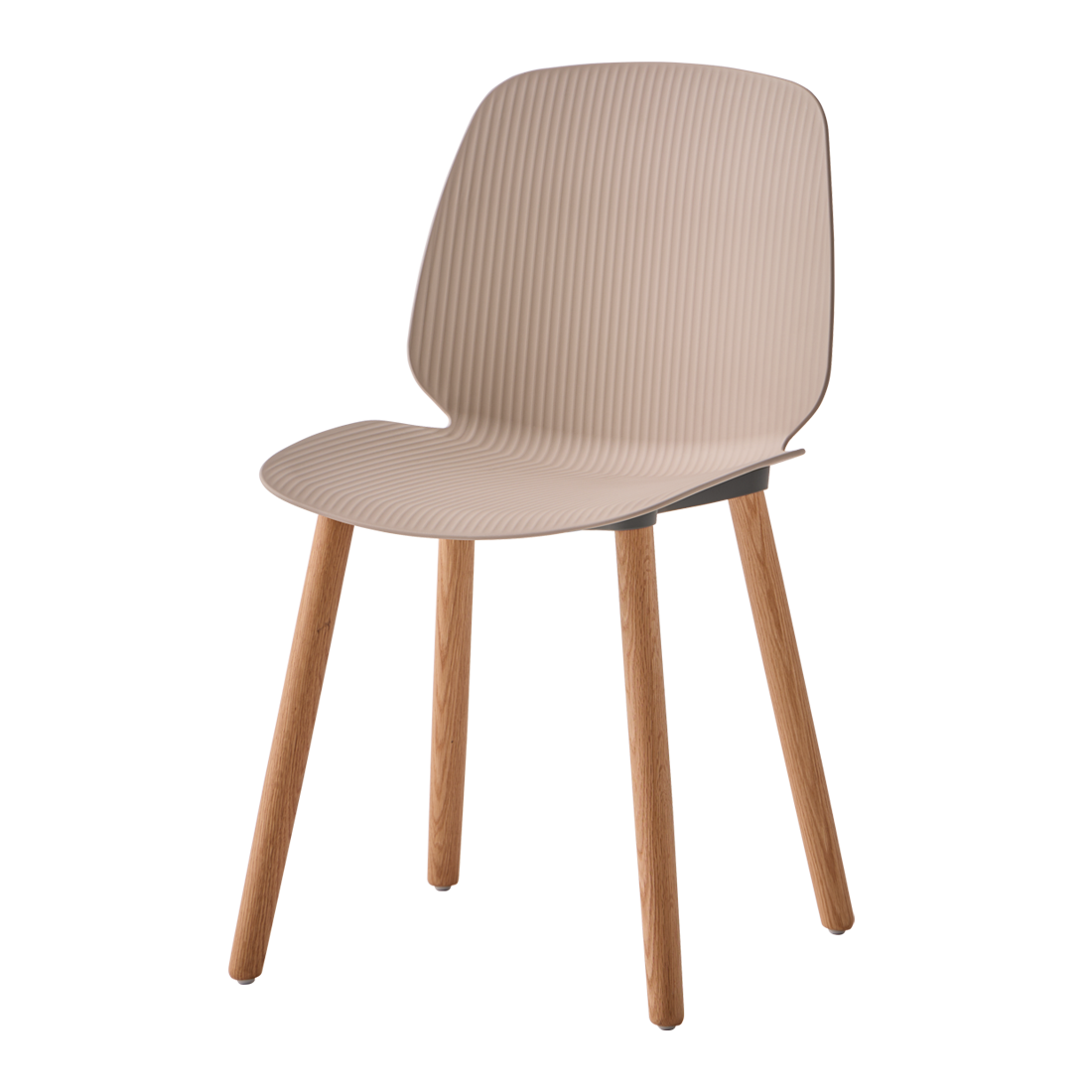 OSWELL embraces essential beauty, intelligent versatility, and sustainability to bring spaces to life with its unique design and limitless adaptability. Its original plastic mono-shell and warm surface texture define the identity of this versatile collection.