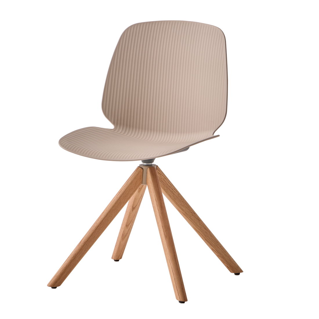 OSWELL embraces essential beauty, intelligent versatility, and sustainability to bring spaces to life with its unique design and limitless adaptability. Its original plastic mono-shell and warm surface texture define the identity of this versatile collection.