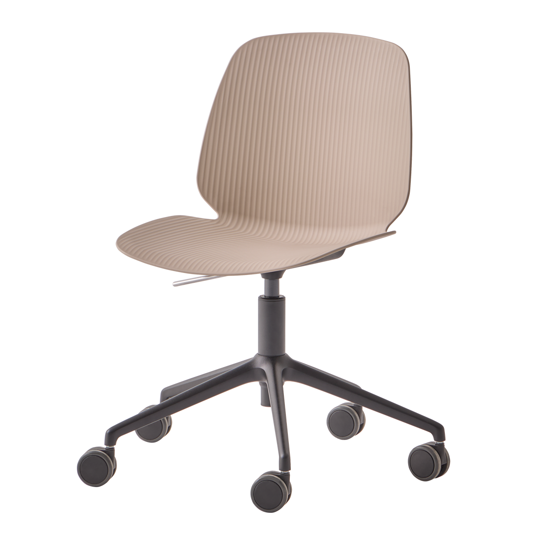 OSWELL embraces essential beauty, intelligent versatility, and sustainability to bring spaces to life with its unique design and limitless adaptability. Its original plastic mono-shell and warm surface texture define the identity of this versatile collection.