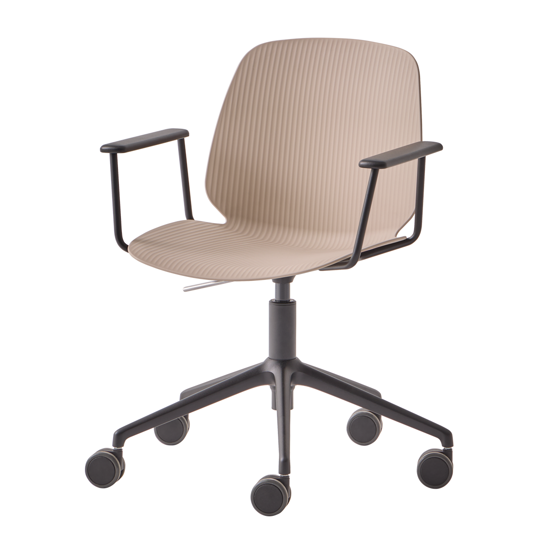 On the image: armchair with 5 spoke aluminum swivel base on casters + gas lift.