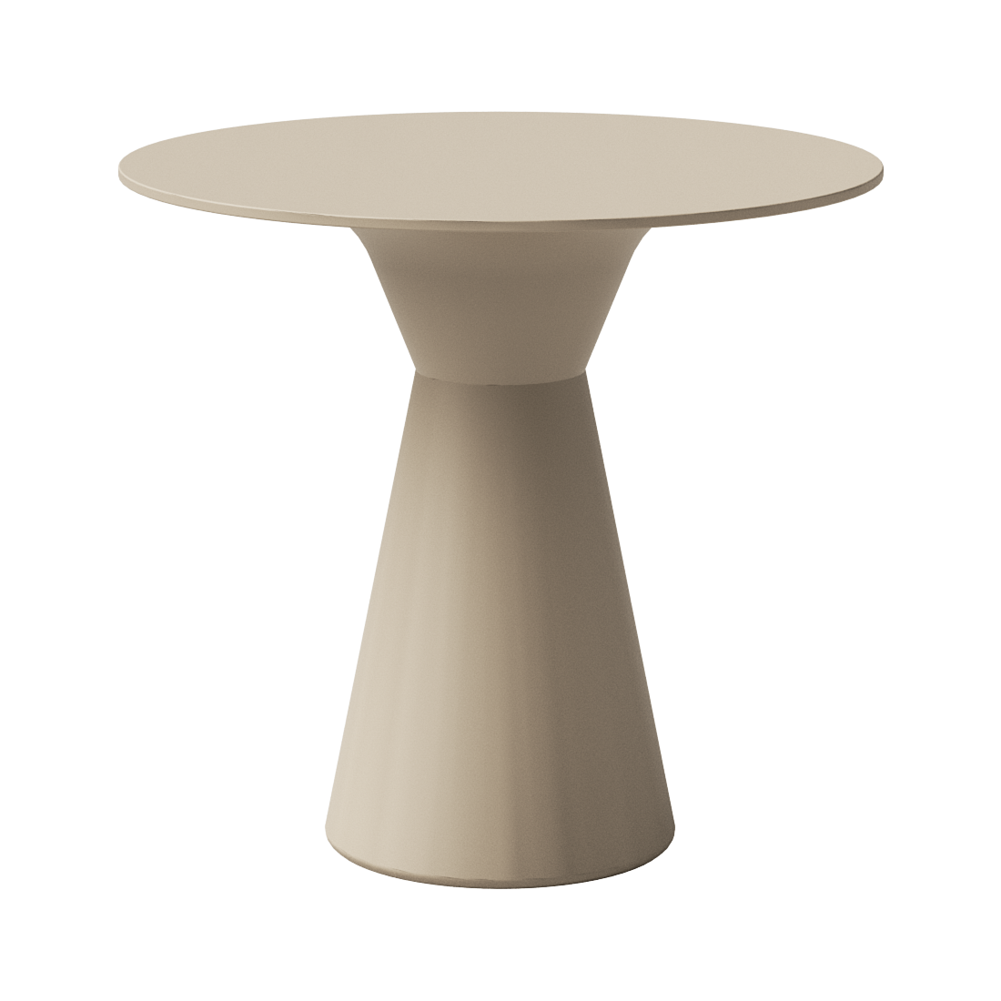 Versatile table with round central base and round or square top. The original central polyethylene base is available in a wide variety of standard and custom finishes. The base can be combined with tops of different materials and dimensions. The great variety of finishes and materials available allows to compose the table required in any context and space.