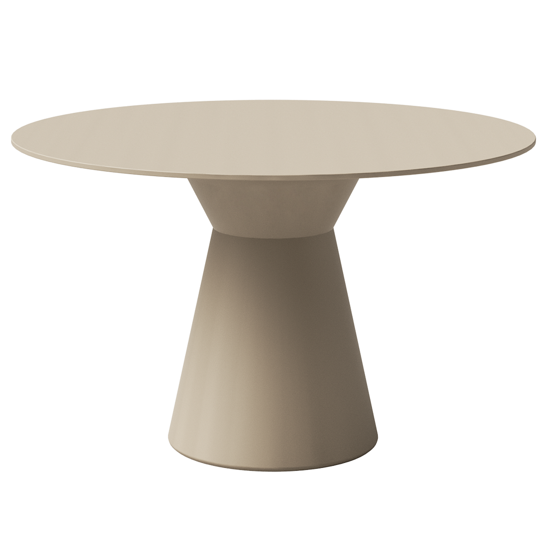 Versatile table with round central base and round or square top. The original central polyethylene base is available in a wide variety of standard and custom finishes. The base can be combined with tops of different materials and dimensions. The great variety of finishes and materials available allows to compose the table required in any context and space.