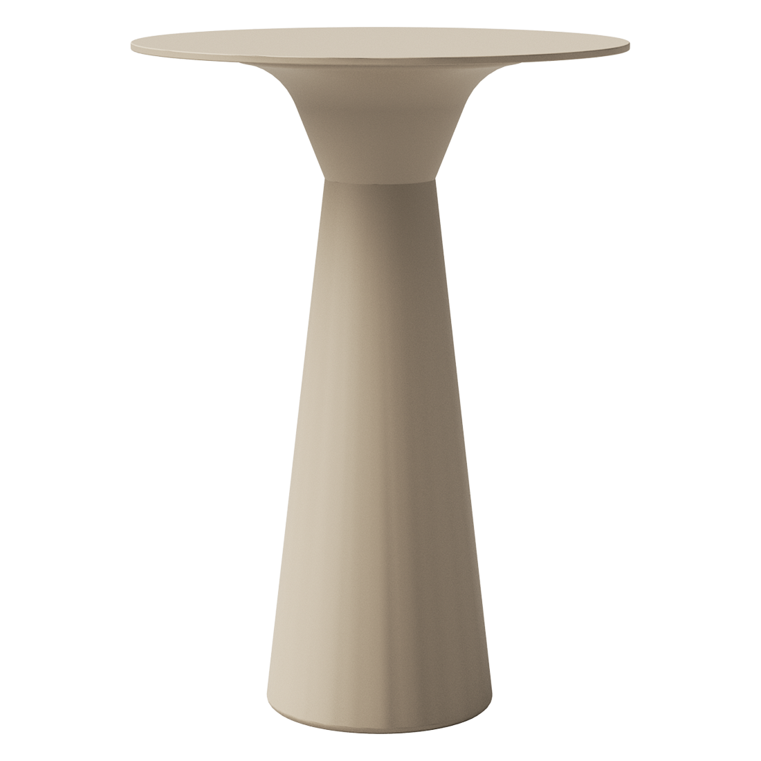 Versatile table with round central base and round or square top. The original central polyethylene base is available in a wide variety of standard and custom finishes. The base can be combined with tops of different materials and dimensions. The great variety of finishes and materials available allows to compose the table required in any context and space.