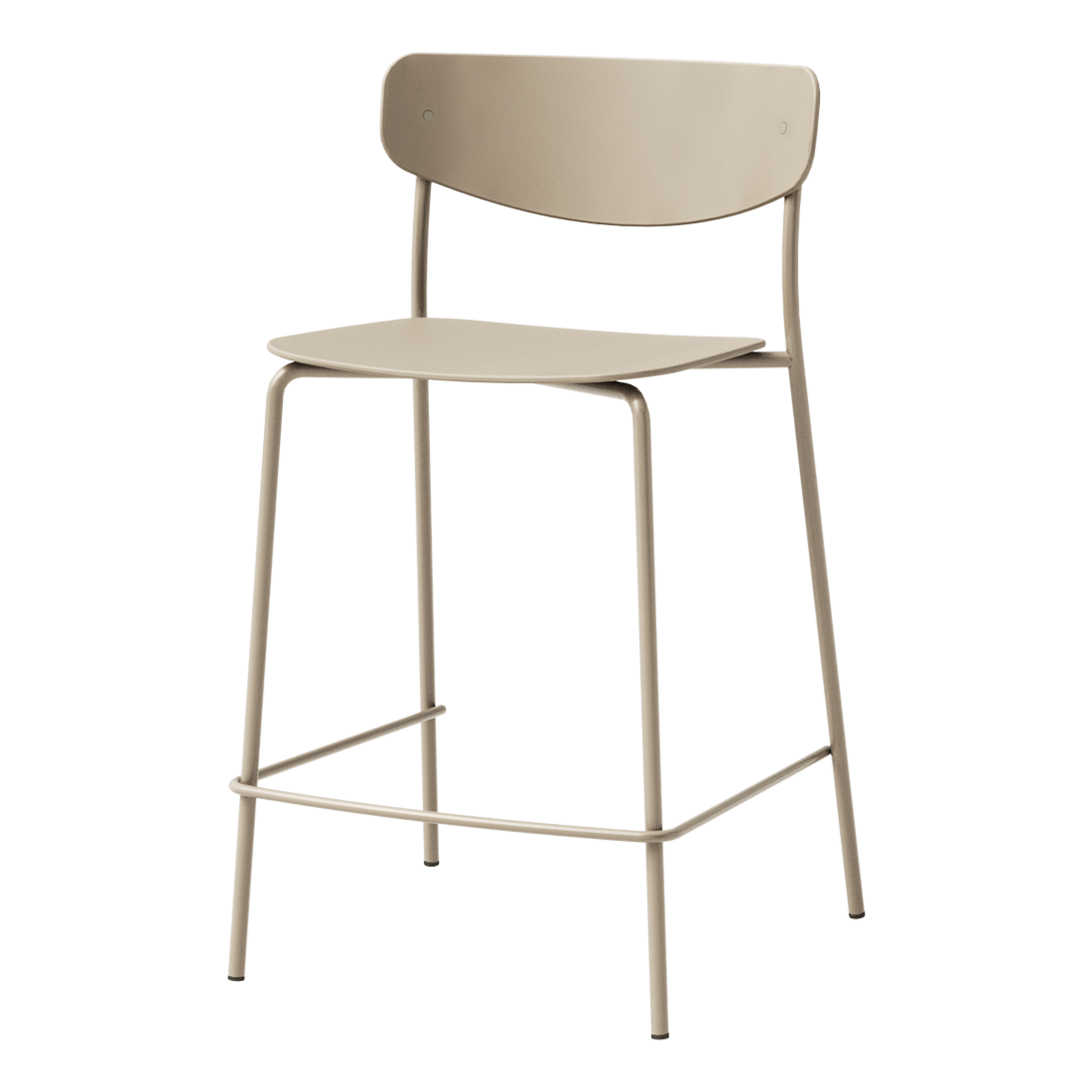 On the image: counter stool with 4 leg frame in stainless steel (polypropylene seat & back).