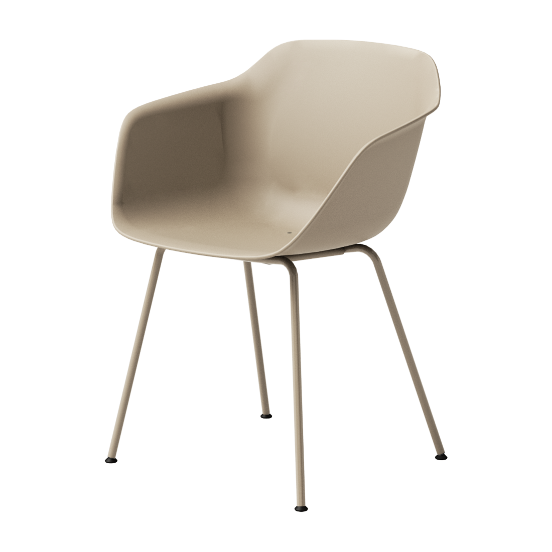 On the image: armchair with polypropilene seat and a 4 leg base in stainless steel. Optional upholstered seat pad available.