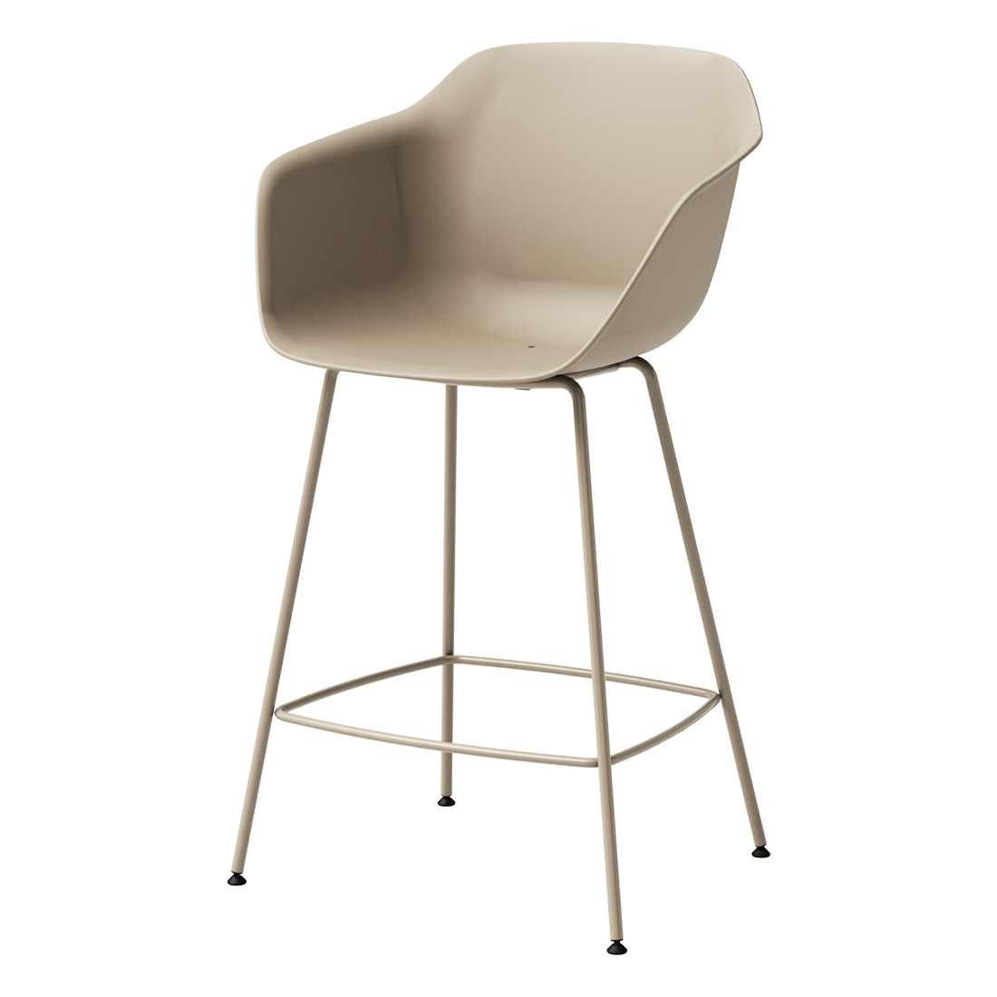 On the image: high armchair with polypropylene shell and a 4 leg frame in stainless steel. Optional upholstered seat pad available.