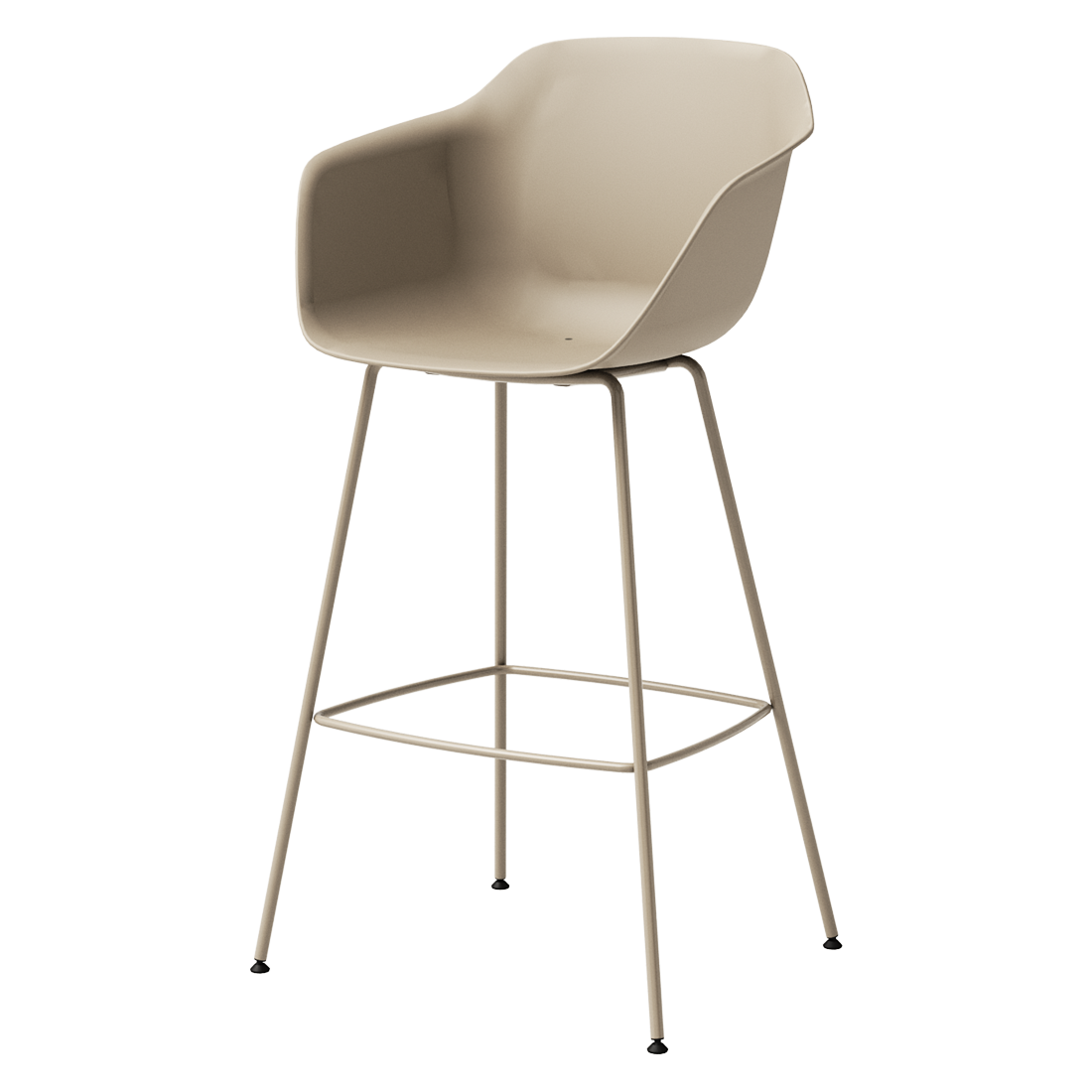 On the image: counter armchair with polypropylene shell and a 4 leg frame in stainless steel. Optional upholstered seat pad available.
