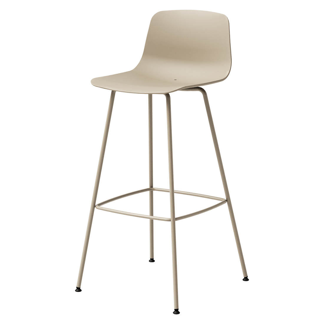 On the image: high stool with polypropylene seat shell and 4 leg base in stainless steel.