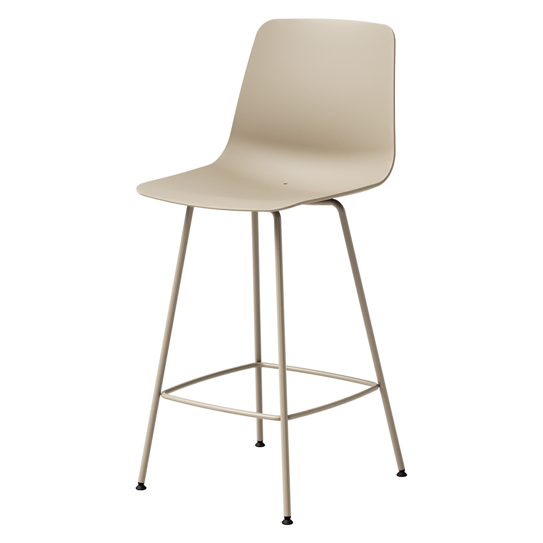 On the image: counter chair with polypropylene shell and steel 4 leg frame in stainless steel.